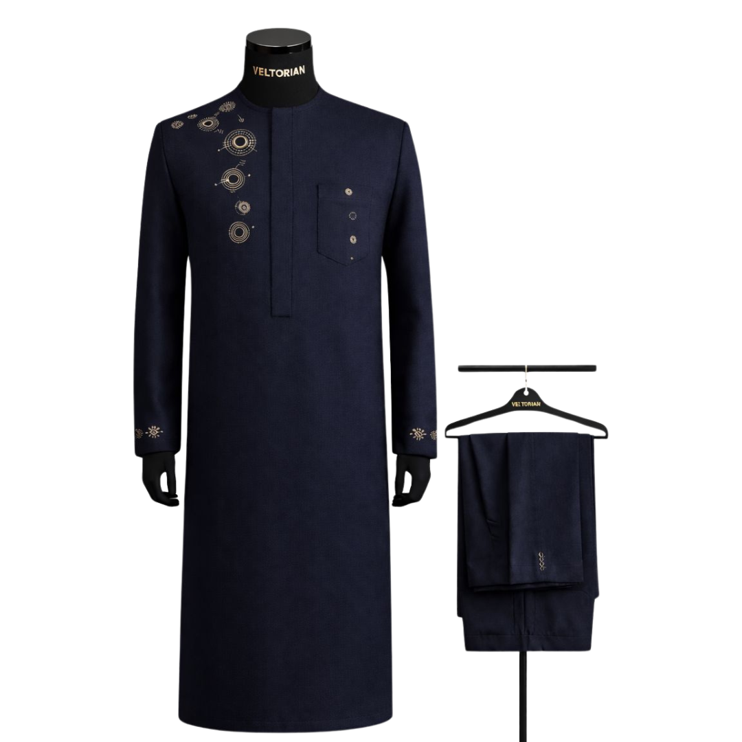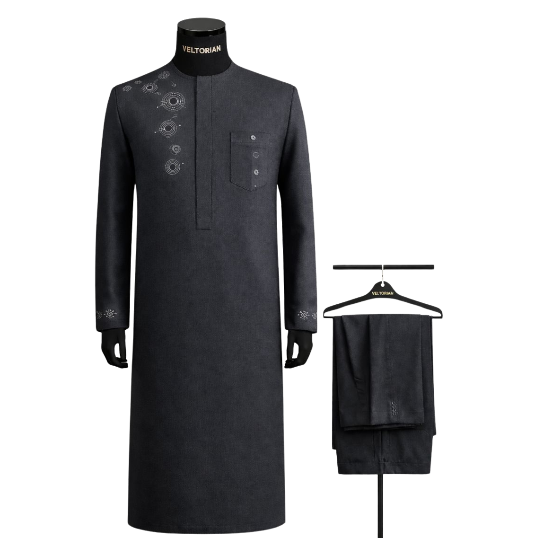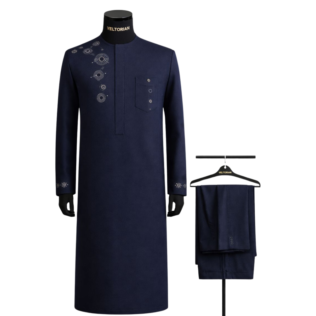 Paired with matching tailored trousers, The Arcline functions as a complete luxury set—ideal for weddings, formal dinners, executive gatherings, religious ceremonies, and high-profile social events. It transitions effortlessly from day to evening, allowing the wearer to remain appropriately dressed without changing tone or presence.