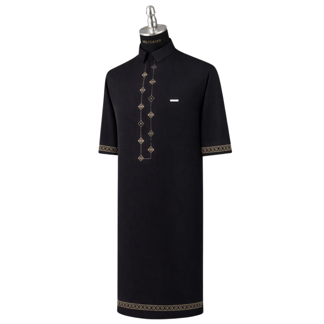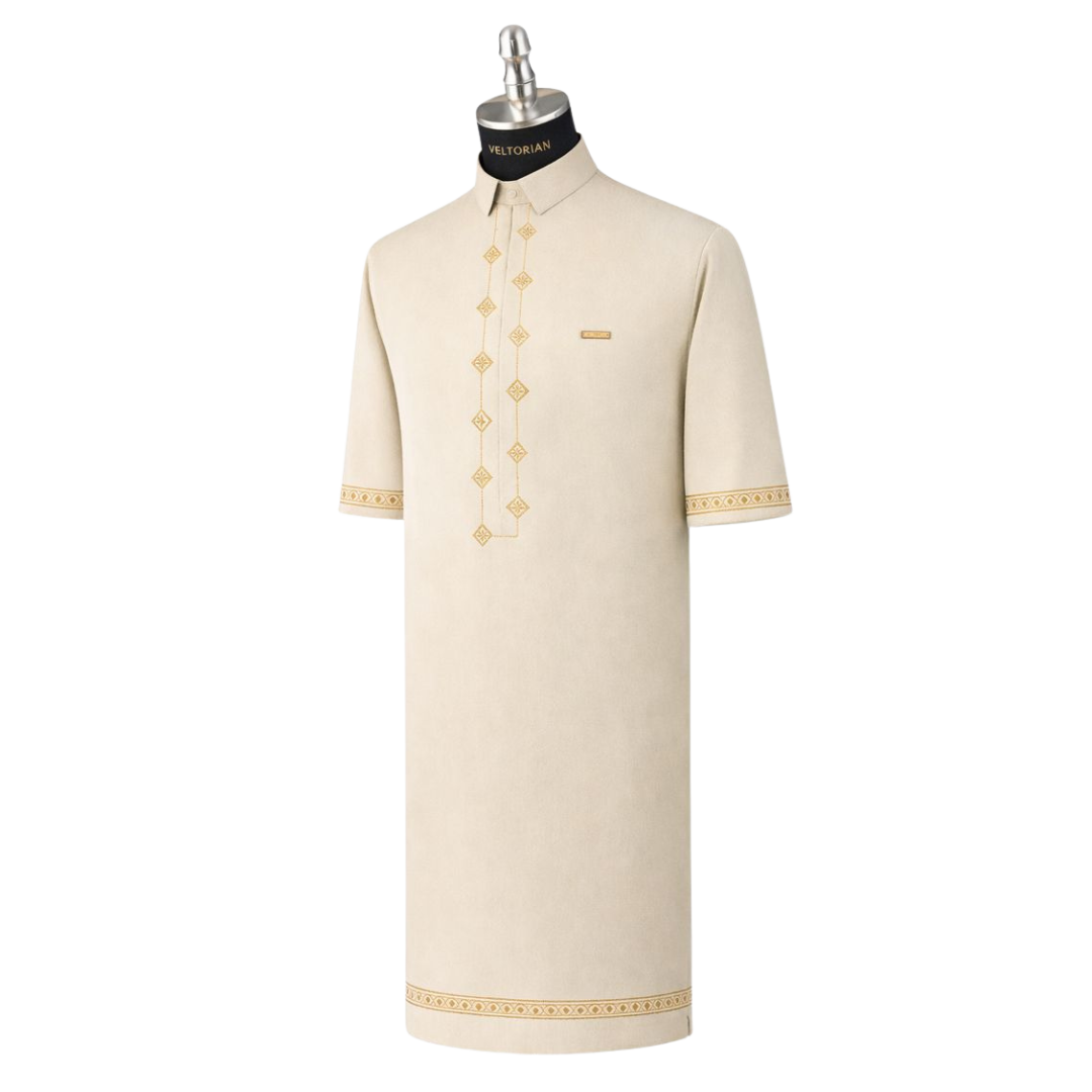 Functionality remains effortless. A clean placket and discreet pocket allow the Jellabiya to transition seamlessly from ceremonial events to formal gatherings. Whether worn for weddings, prayers, executive occasions, or cultural celebrations, the Arcseal adapts with ease.
