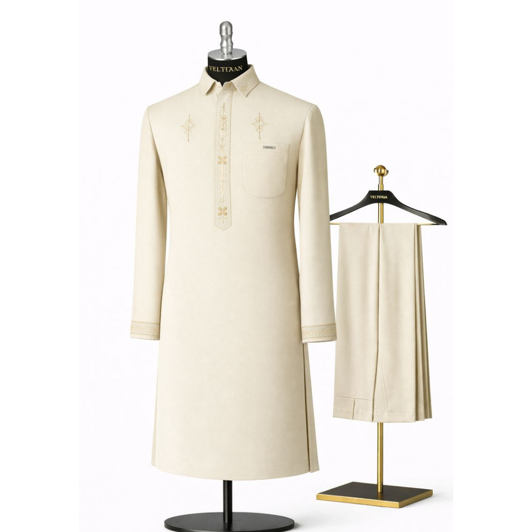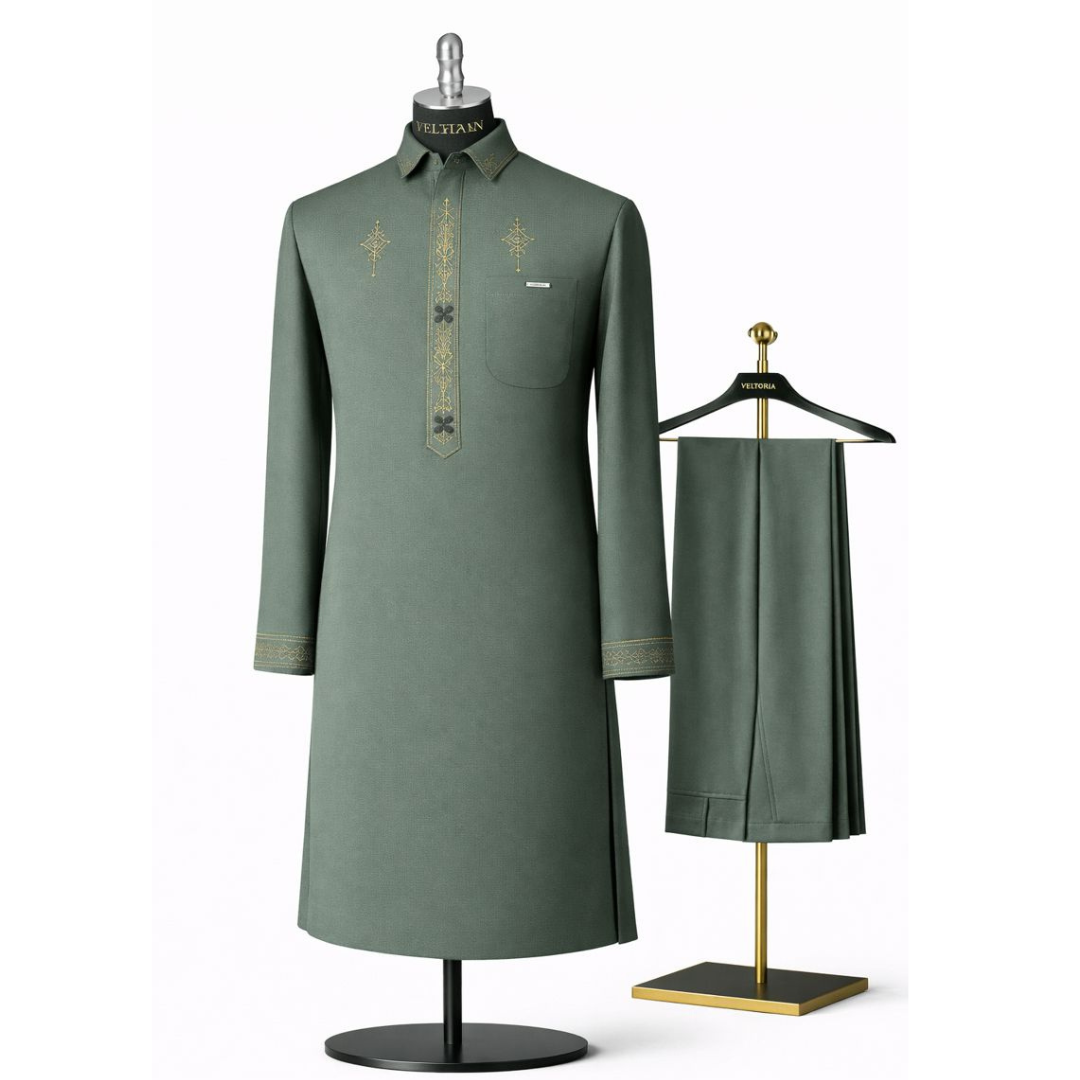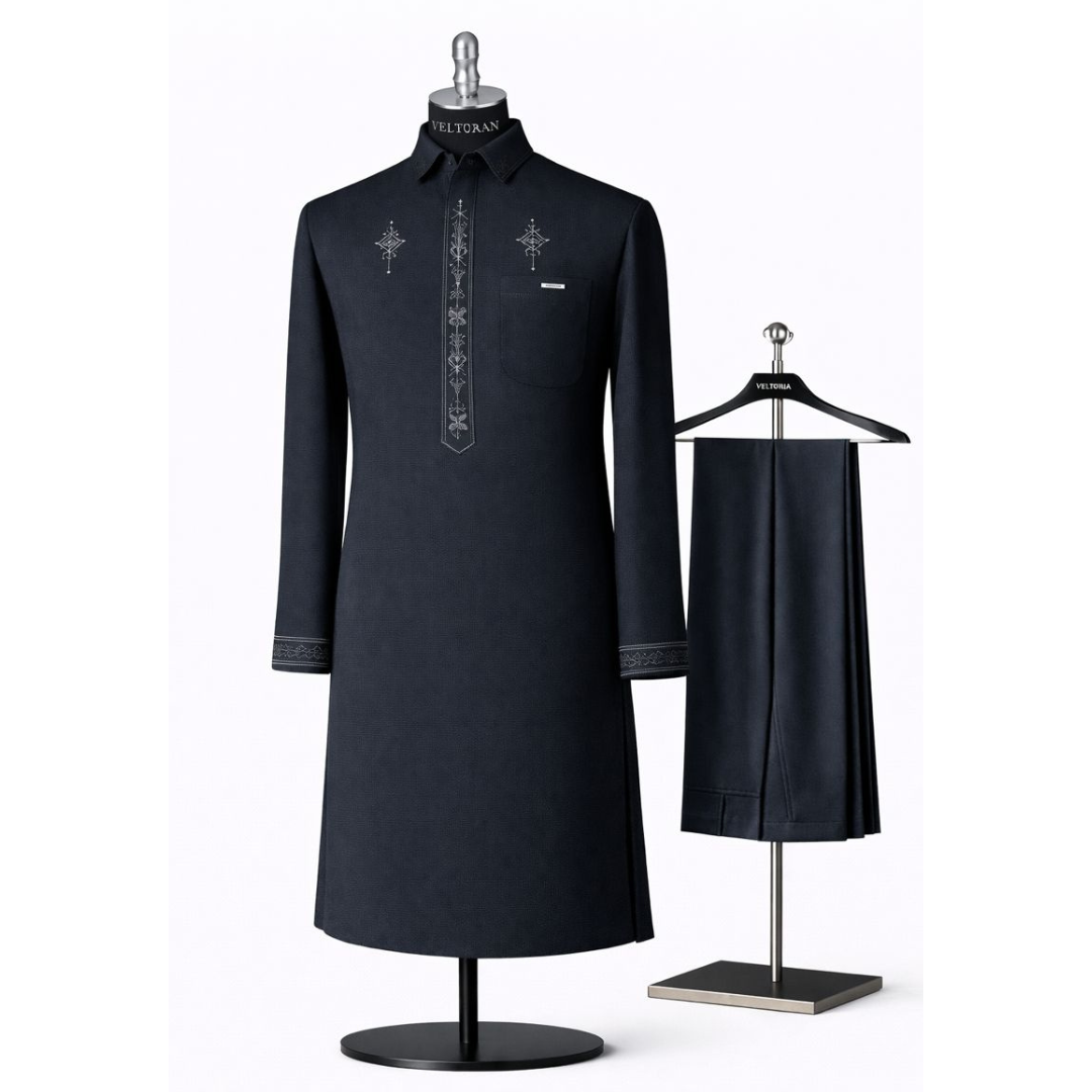 The Aurelian Men’s Luxury Senator Kaftan represents controlled power, refined taste, and modern heritage. Designed by VELTORIAN, this piece speaks to men who value structure, restraint, and presence in every setting.